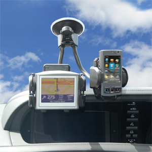 Cel mai practic şi convenabil suport auto de pe piaţă tocmai a devenit şi mai avantajos deoarece acum este disponibil cu două tuburi flexibile, care permit fixarea a două obiecte în acelaşi timp, astfel încât poate susţine simultan un telefon mobil şi un dispozitiv de navigaţie prin satelit.